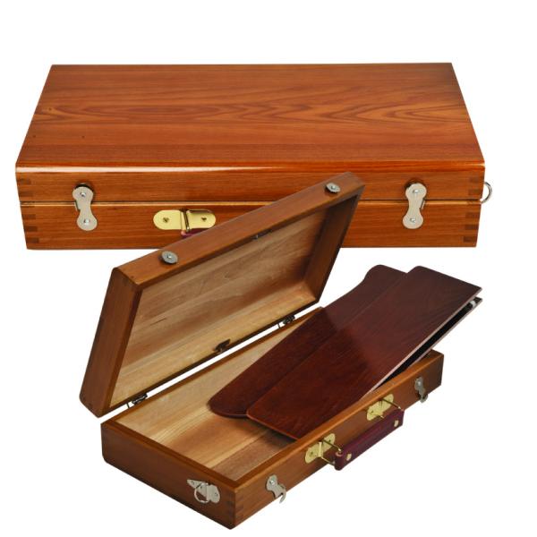 Wooden Box with foldaway palette Made by beech/elm/pine wood the size 38.7x19.5x8.7cm